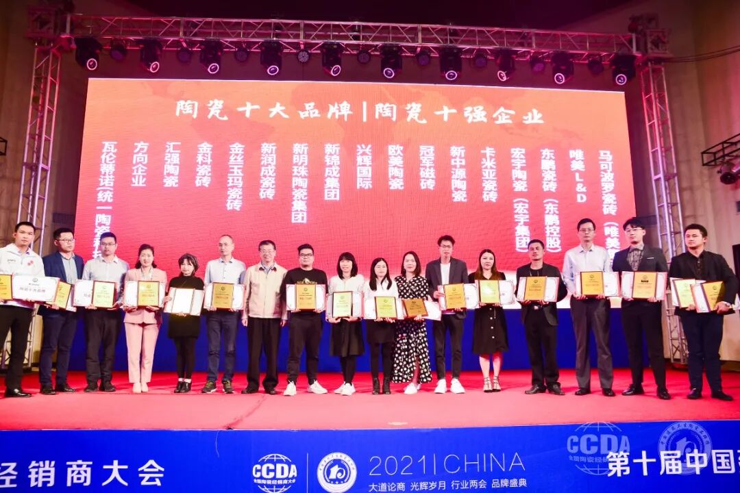 本次会议作为当前中国建筑材料领域最具影响力的权威盛会,吸引了国家行业协会领导、数百位行业品牌企业大咖以及主流媒体齐聚一堂,共商论道,为陶卫行业未来发展助力。会上,欧美陶瓷作为优秀企业代表应邀出席,并在第十届中国建筑卫生陶瓷品牌榜揭晓中,凭借强大的品牌实力,优质服务以及高品质产品,斩获“陶瓷十大品牌”、“ 工程瓷砖推荐品牌”两项大奖,荣光璀璨,闪耀“两会”。