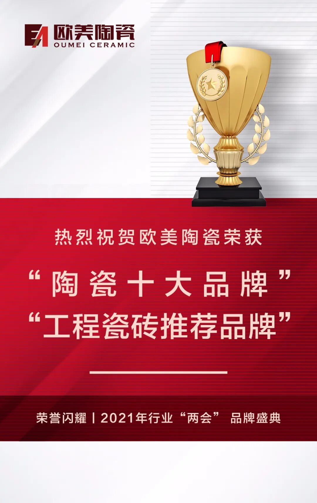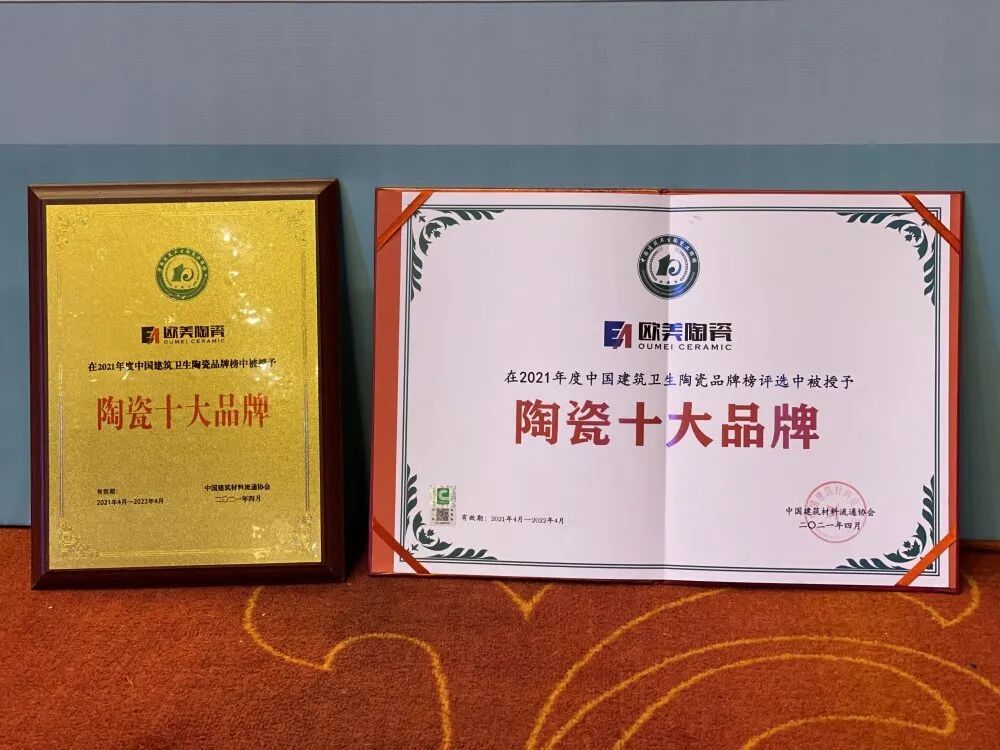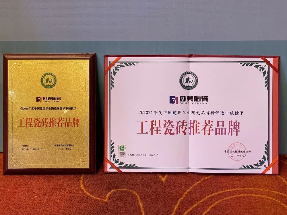 荣誉闪耀丨欧美陶瓷斩获“陶瓷十大品牌”、“ 工程瓷砖推荐品牌