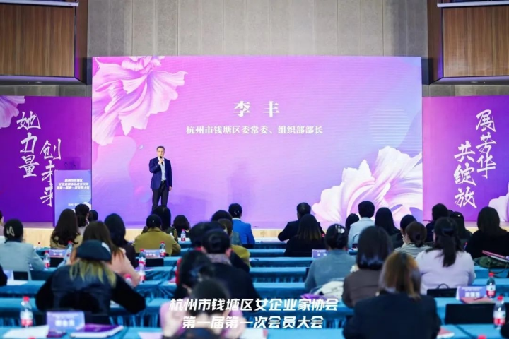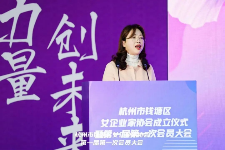 12月8日,杭州市钱塘区女企业家协会成立仪式暨第一届第一次会员大会召开。杭州市妇联党组成员、副主席叶琦,钱塘区党工委委员、区委常委、组织部部长李丰,区人大常委会副主任李红,钱塘区管委会副主任、副区长潘伟红,区政协副主席包莹莹等出席会议。杭州市女企业家协会会长徐力受邀参加大会并致贺词,协会第一届全体会员及嘉宾参加大会。本次大会选举产生了会长、副会长、秘书长等协会班子成员,衣邦人创始人、董事长兼CEO方琴当选为杭州市钱塘区女企业家协会第一届会长。