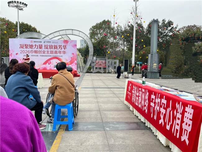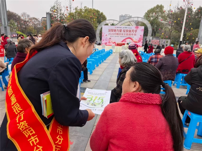 3月6日,在资阳市妇联联合资阳市邮政分公司于市政府大广场举办的 2026 年巾帼创业主题活动现场,雁江区邮储银行携手雁江邮政分公司同步开展 “清朗金融网络,守护安心消费”3・15金融消费者权益保护专项宣传活动,将实用的金融知识送到群众身边,助力守护群众财产安全。